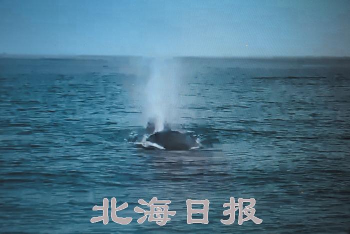 本報(bào)記者在網(wǎng)友瘋傳的視頻中,看到一男一女兩名游客正在海中游泳,在船上拍攝者即是鄧先生。游泳的兩人不久便看到了離他們不遠(yuǎn)的鯨魚。從視頻中可以很清晰地看到鯨魚在海面上露出的雙鰭。在另一個(gè)視頻中,記者看到拍攝者近距離拍攝到的鯨魚一邊游水一邊噴出水柱的“零距離”照片。