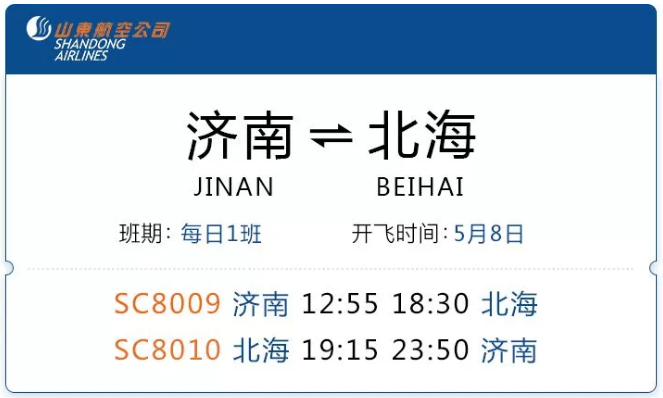 新開北海至濟(jì)南航線,單程低至770元起