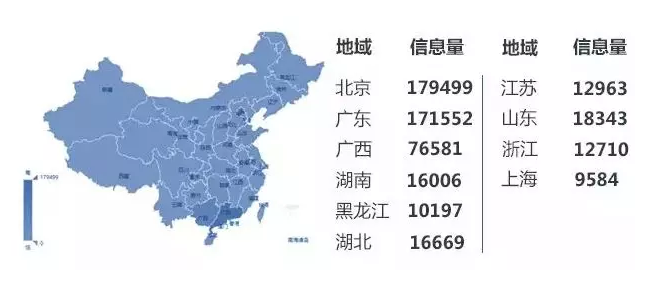 據(jù)悉,在監(jiān)測(cè)時(shí)間段內(nèi),涉及廣西旅游行業(yè)的相關(guān)信息共有近60.6萬條,其中敏感信息3.0萬條,其他信息57.2萬條,廣西旅游相關(guān)信息整體分布較為平均,受關(guān)注度較為持續(xù)。從地域分析看,除廣西本地的網(wǎng)友外,北京和廣東的網(wǎng)友對(duì)廣西旅游的相關(guān)信息也同樣關(guān)注。