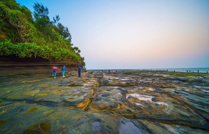 5、五彩灘景區(qū):原名芝麻灘,是因沙灘上有許多像芝麻一樣的黑色的小石粒而出名。退潮后的芝麻灘格外的漂亮,巨大的火山巖石一層一層的,在陽光的照射下特別的壯面。大片大片的火山熔巖裸露出來,特別的寬闊。