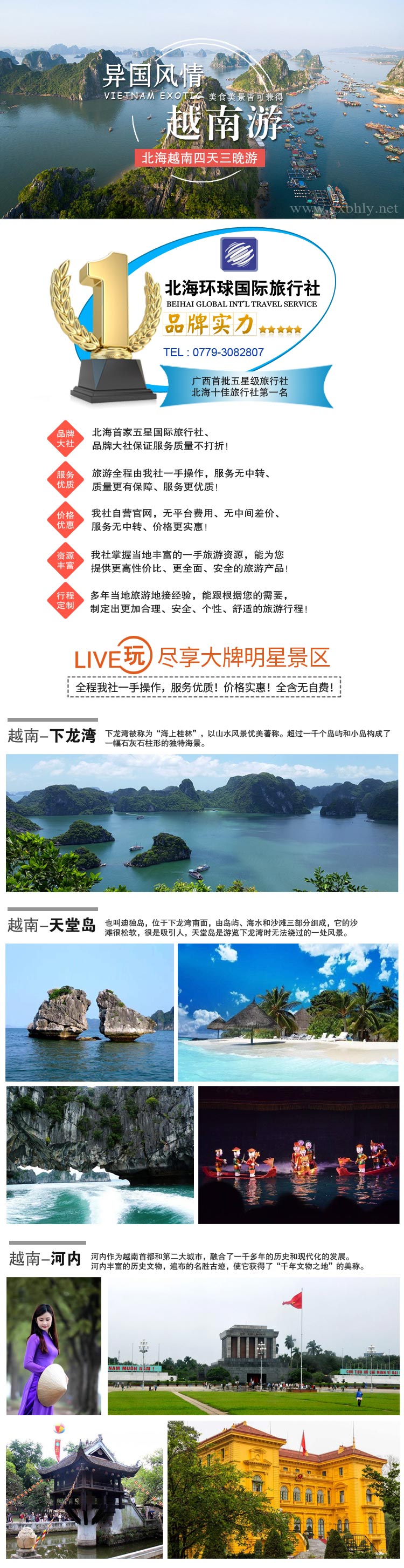 4、景點(diǎn):行程中所列景點(diǎn)首道門票;特別聲明:行程中“印象越南表演、 天堂島、月亮湖、迷宮、巡州島”均為我社特別贈送項(xiàng)目,如不可抗力因素不能游覽或游客不參與游覽,亦無費(fèi)用減退