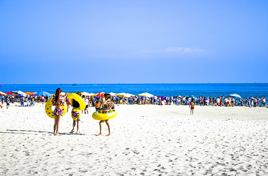 2、銀灘有時海浪大,游泳請注意安全。游泳時不能超越安全區(qū),家長請看管好自己的小孩。