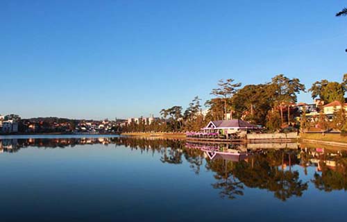 19世紀20年代法國殖民政府對外開放了浪平(大叻)皇宮酒店,在錦黎河(Cam Ly River)上筑壩打造出了大叻湖(春香湖),大叻便成了再適合不過的避暑勝地。春香湖位于大叻市中心,面積約5平方公里,湖周長約5公里,湖畔綠柳環(huán)繞,天鵝在清澈的湖水上覓食,游船和劃艇在湖面上悠閑的劃行,一派悠然、寧靜的景象。這里環(huán)境幽雅,風光宜人,是游樂納涼的好地方。這里生態(tài)很好,規(guī)劃很好,除了狹長的湖面、綠草、松樹,以及身后小山坡上巨大的高爾夫球場都帶給你驚喜,因此這里也被稱為越南愛情圣地——蜜月之都,是越南人和外國游客最為喜愛的旅游勝地。