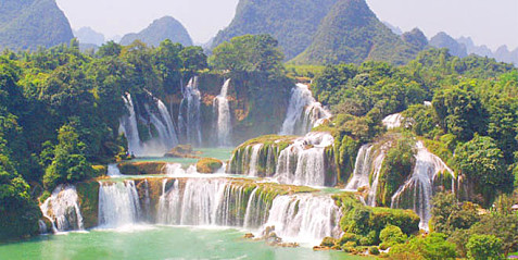 第一層瀑布上方洞頂,有碩大的形態(tài)各異的鐘乳石,尤其是石灰?guī)r造就的一層一層田園般的風光更是天工巧奪,令人驚嘆不已。